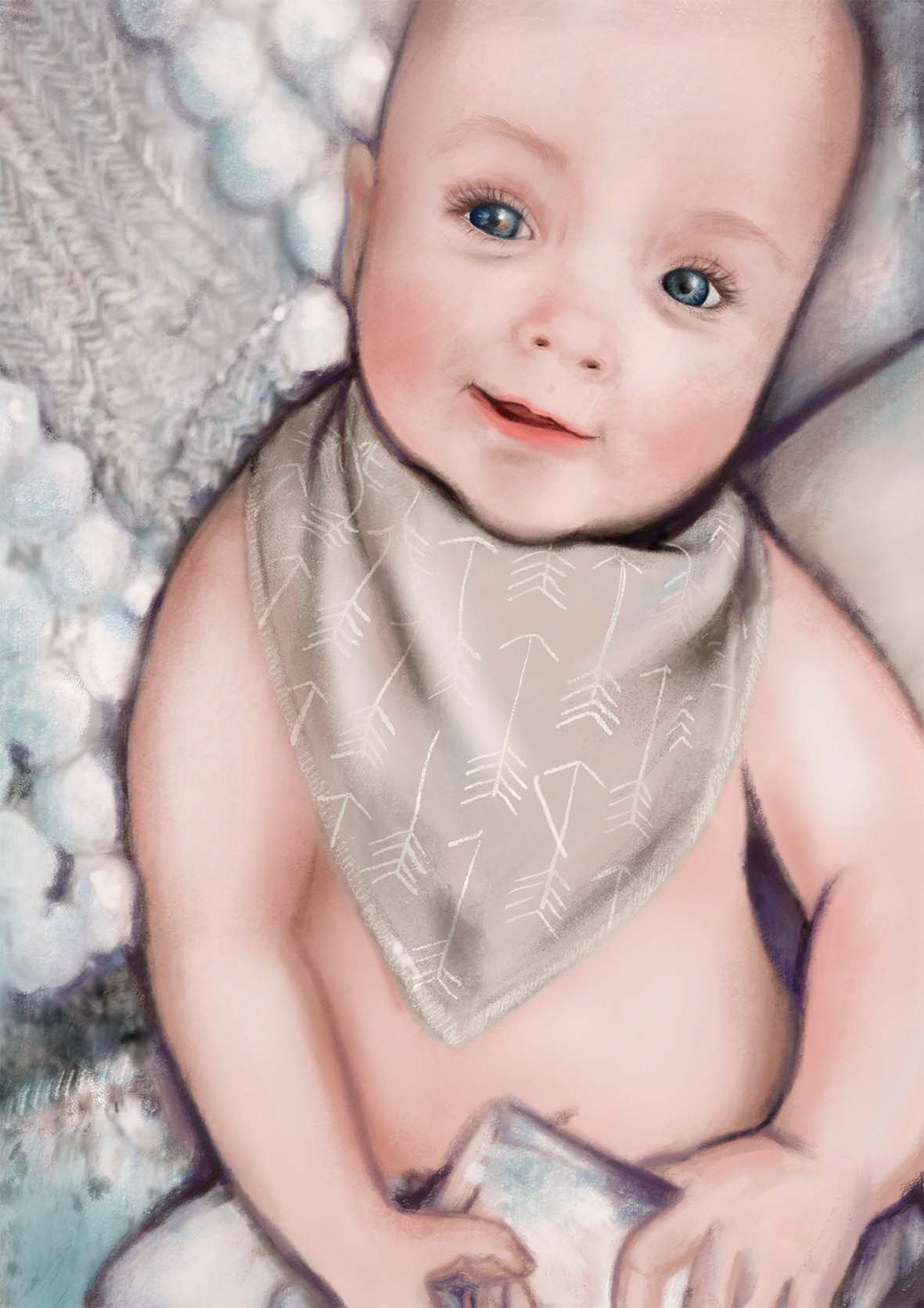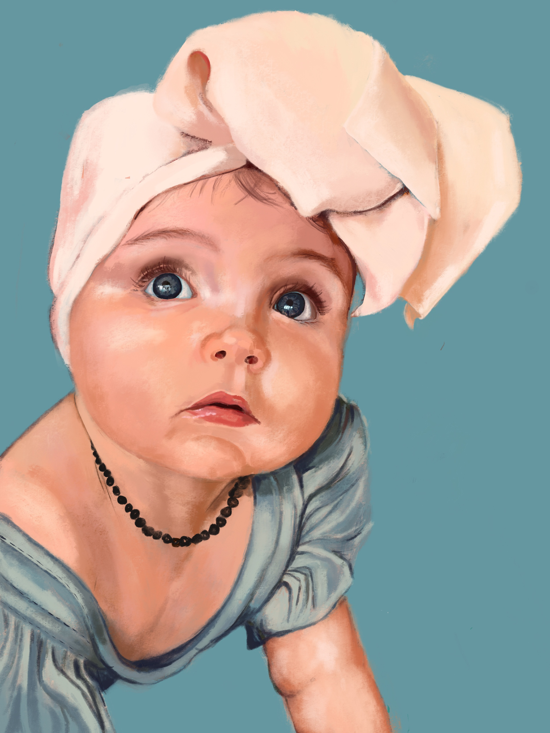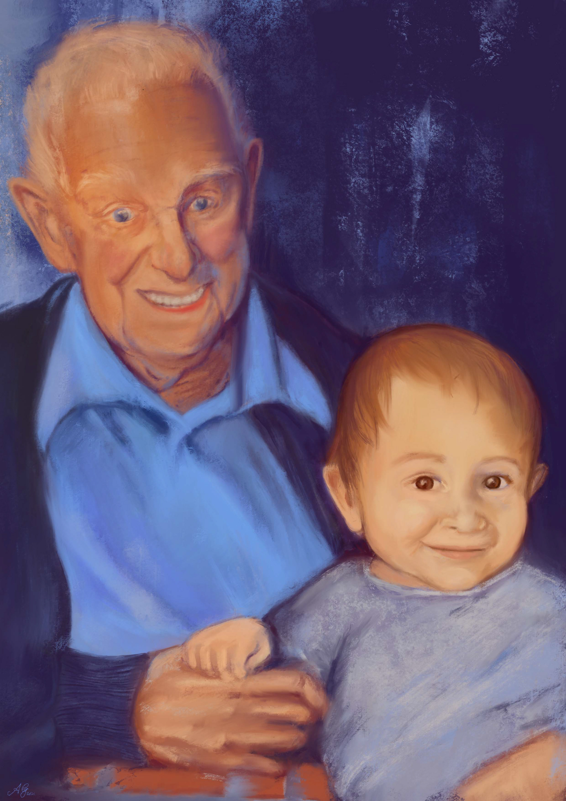 Digital Portrait of baby Elouise, Tanner, Eh Kel Ler, and Bobby and his grandpa. Made in procreate 2019-2021.